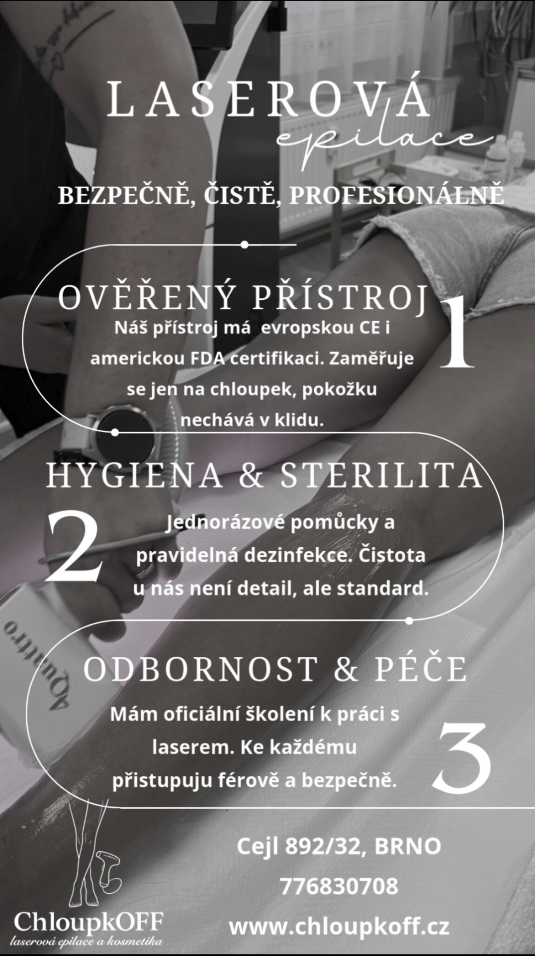 Brno se může pochlubit novým beauty studiem ChloupkOFF, které najdete na Cejlu. Studio přináší moderní řešení pro každého, kdo touží po dlouhodobě hladké pokožce a už nechce trávit čas neustálým holením nebo se trápit bolestivým vytrháváním chloupků.