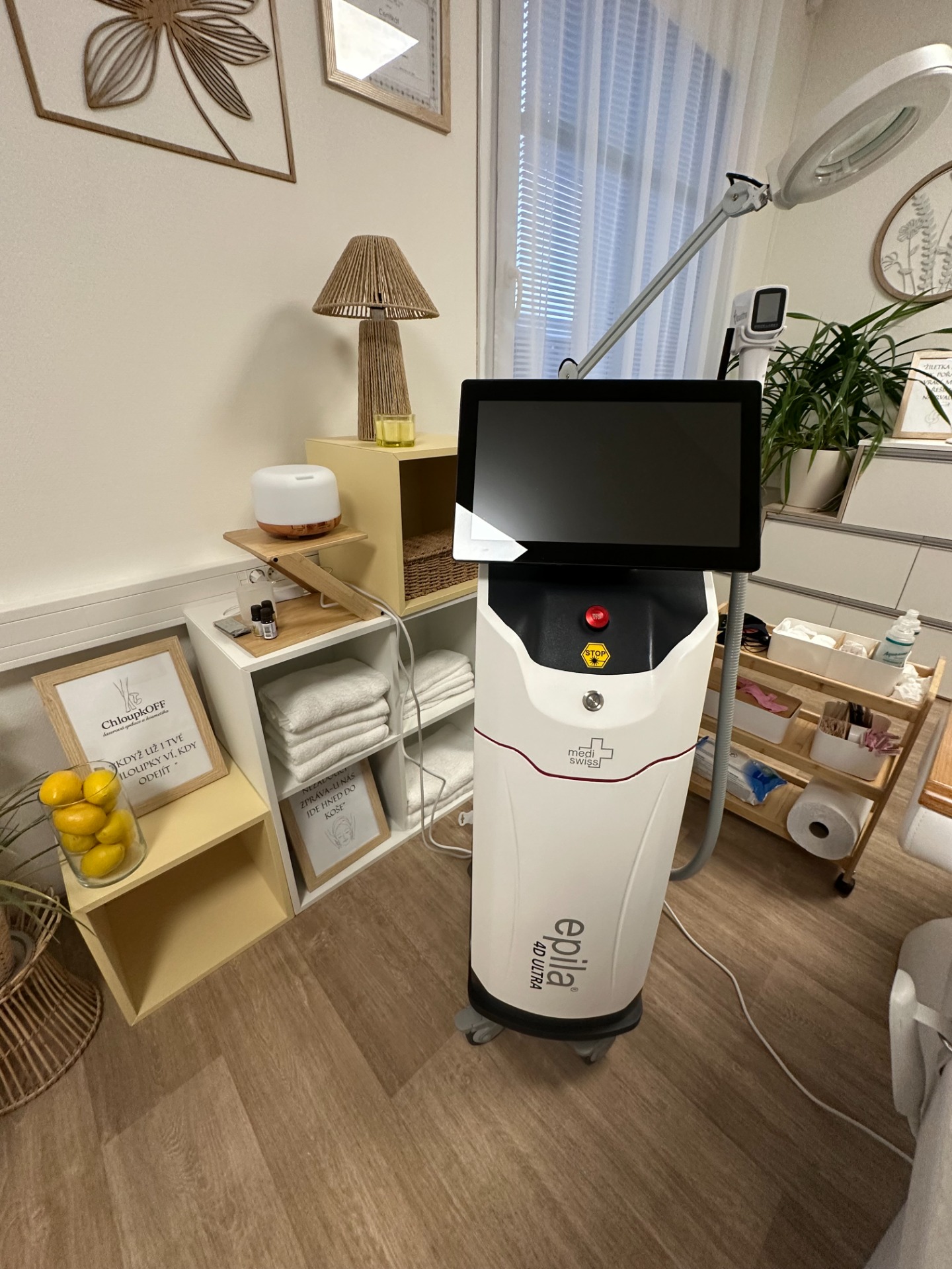 Srdcem studia je švýcarský laser Mediswiss Epila 4D Ultra – špičková technologie, která kombinuje hned čtyři vlnové délky. Díky tomu dokáže účinně zasáhnout chloupky v různých hloubkách, a ošetření je tak rychlé, šetrné a vhodné i pro citlivou nebo opálenou pokožku.