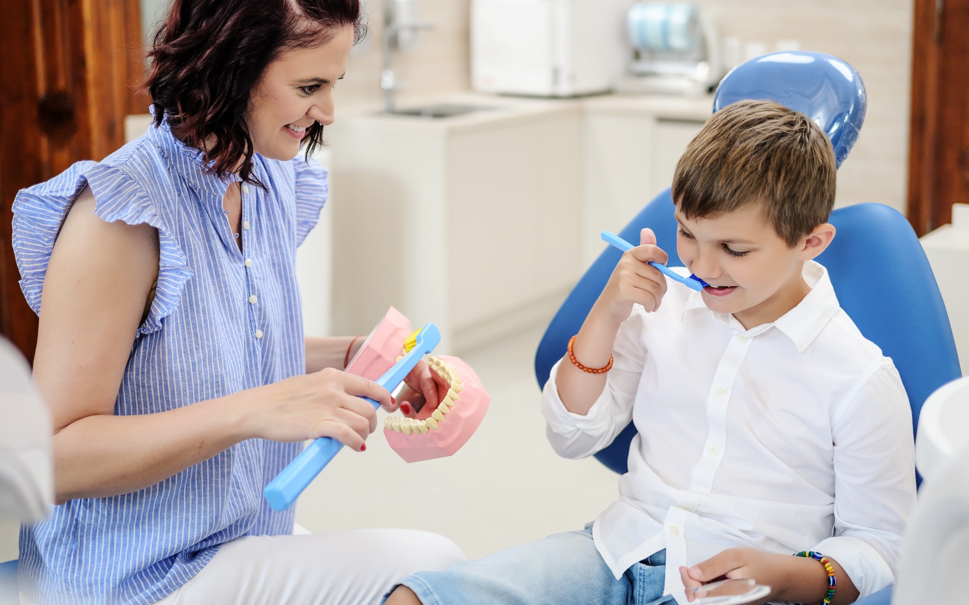 Při ošetření se zaměřujeme na vysvětlení, jak vzniká zubní kaz a zánět dásní, na nácvik správné techniky čištění zubů a budování zdravého vztahu k péči o chrup. Vše probíhá v přátelské atmosféře s ohledem na věk a individuální potřeby dítěte.