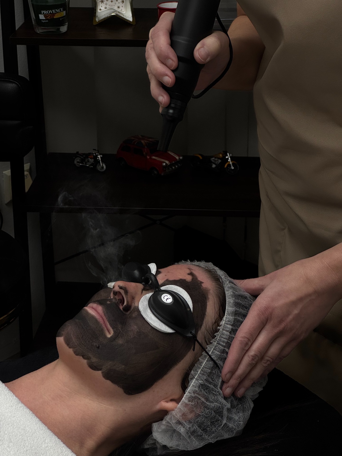 Součástí mé nabídky je také karbonový peeling, oblíbené ošetření, které pleti pomáhá s hloubkovým vyčištěním, sjednocením tónu a celkovým rozjasněním. Ideální volba, když chcete viditelně svěžejší pleť bez zbytečné zátěže.